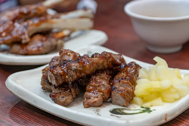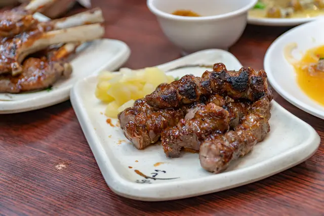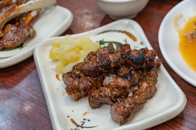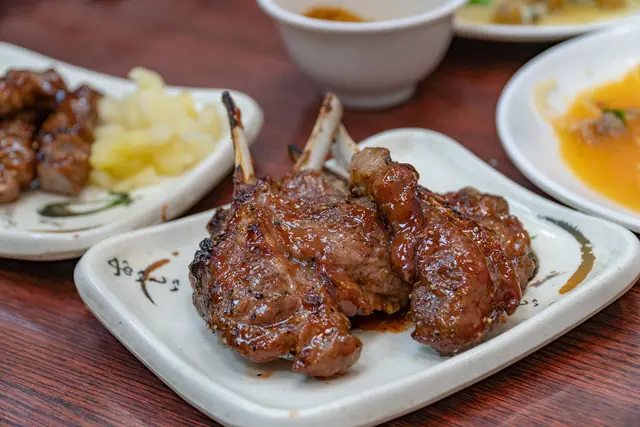 這嚴選澳洲小羔羊肉的肋骨部份的肉,塗上黑胡椒醬等獨門醬汁去烤,這肉肥美多汁,很像骰子牛的概念,但味道鮮美非常多,我真心說坊間太多把羊肉處理的非常難入口的店了,其實好吃的羊肉堪比牛肉,大家來下港吔一定要試試羊肉串,不然就和下一道二選一