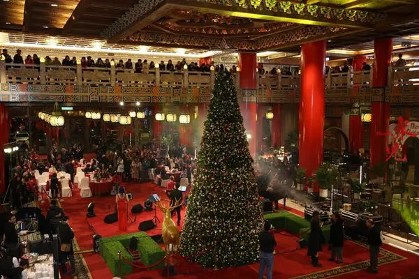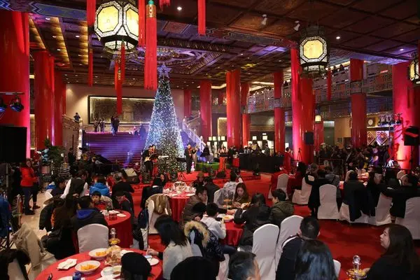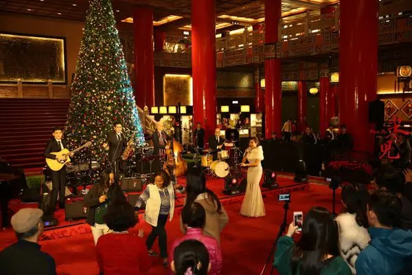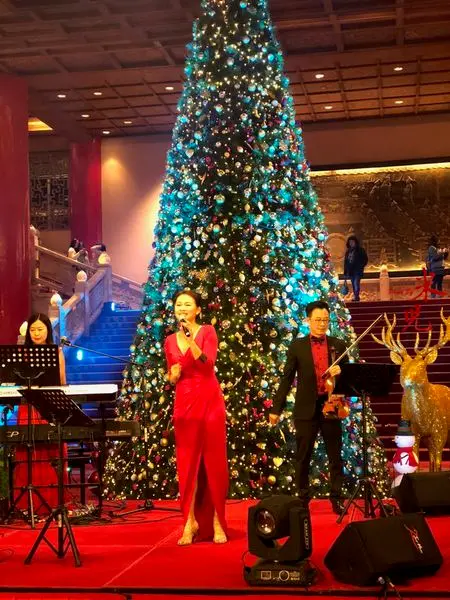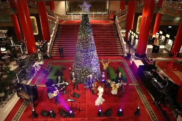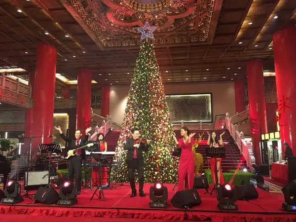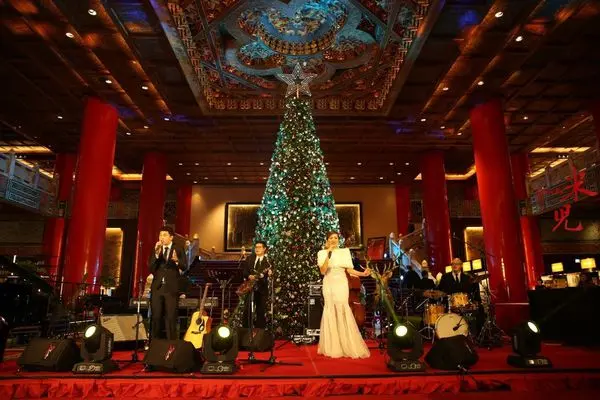 因為要搶個好位置,所以跨年夜這晚,圓山飯店裡每個餐廳(包括一樓咖啡廳和後方的第一夫人咖啡)都客滿,有的還訂位滿到宵夜場,真的超級誇張!而好友之所以非要米兒上圓山,居然是因為開了幾十年的圓山飯店,今年首度開放大廳廣場,不但在挑高的聖誔樹前設置了小舞台辦現場演唱,第二場演唱活動甚至在大廳廣場擺上桌椅,讓訂到位的客人可以坐在大廳喝香檳、吃點心,一邊看現場演唱!真的非常嗨耶!