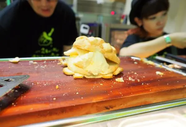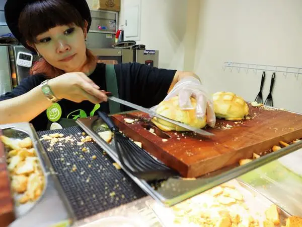點完餐之後,可以看到冰淇淋菠蘿麵包的製作。