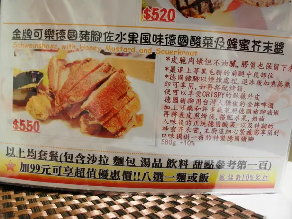 菜名:金牌可樂德國豬腳佐水果風味德國酸菜及蜂蜜芥末醬