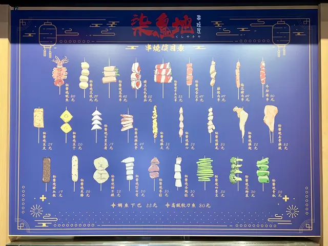 秘醬燒花枝丸$39 秘醬燒杏鮑菇$30 秘醬燒百頁豆腐$19 秘醬燒豆皮$29 梅花豬肉串$49