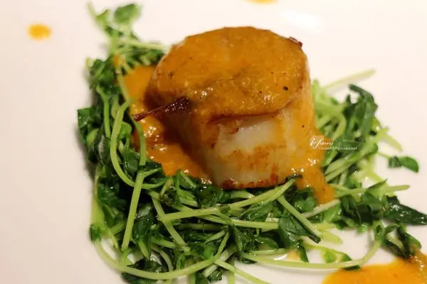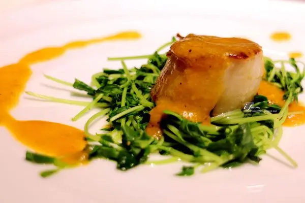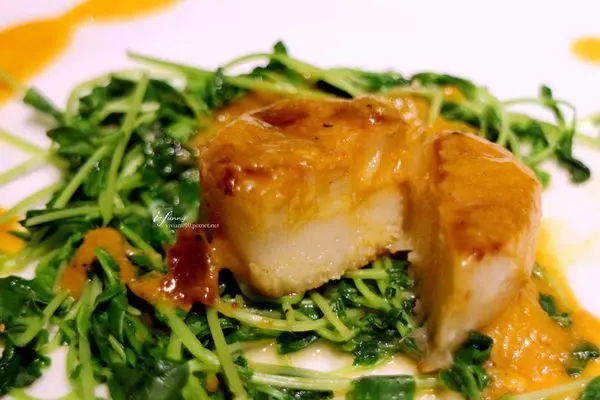 搭以自製略帶甜味的紅甜椒醬,干貝鮮甜軟嫩的口感令人驚嘆不已。