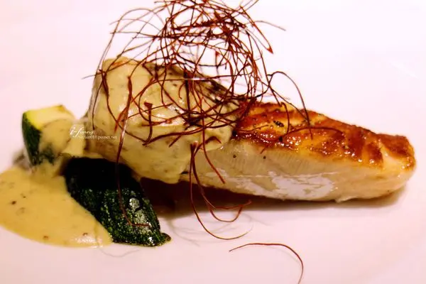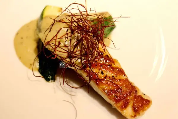細緻的魚肉相當高雅的味道,連一旁的櫛瓜都很美味!