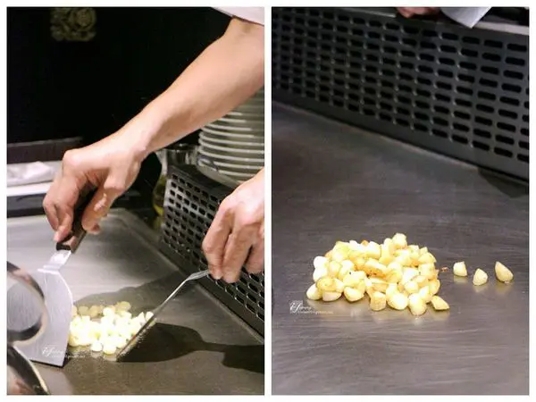 接著李主廚將一顆顆蒜頭煎至金黃色。