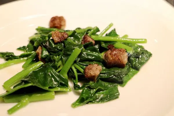 整個炒青菜多了牛肉的香氣及油份的滋潤,牛筋逼出油份後,帶著焦香味,越嚼越香!