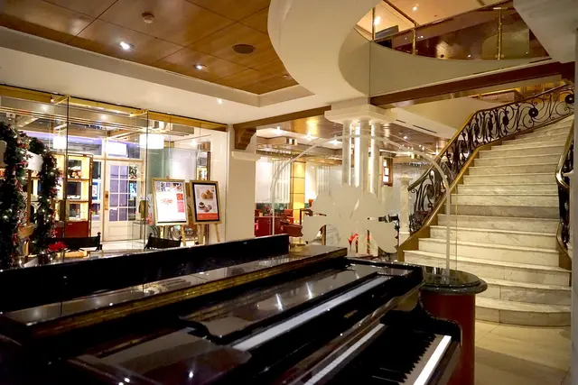 地中海牛排館前有一架漂亮的鋼琴、剛好可以拍照偽裝氣質XDD