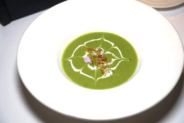 意外的濃郁而不膩、菠菜感不多、上頭撒上些許的油蔥增添風味