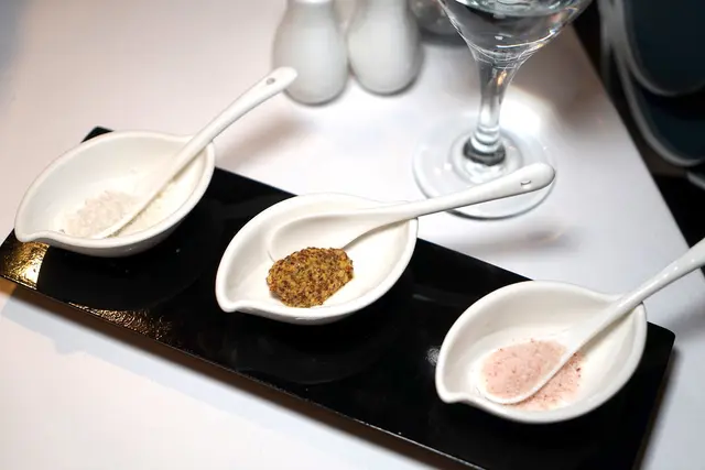 牛排可以搭配烤蒜頭、海鹽、玫瑰鹽、芥末籽搭配食用