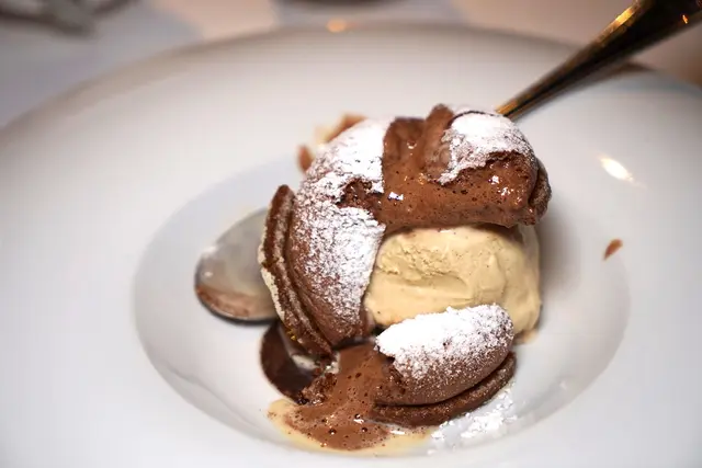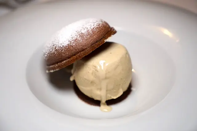 自製的肉桂冰淇淋搭配濃郁的巧克力醬