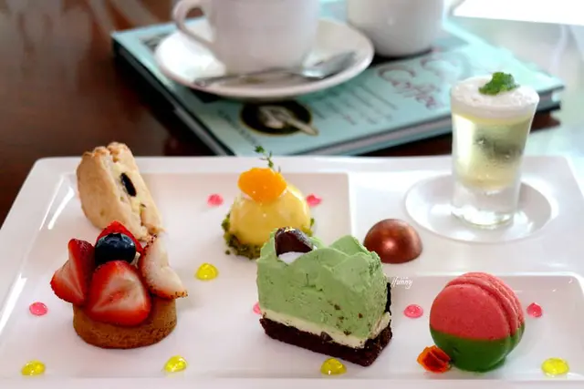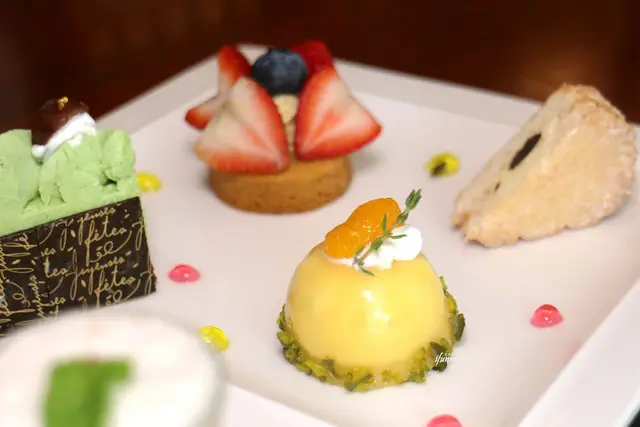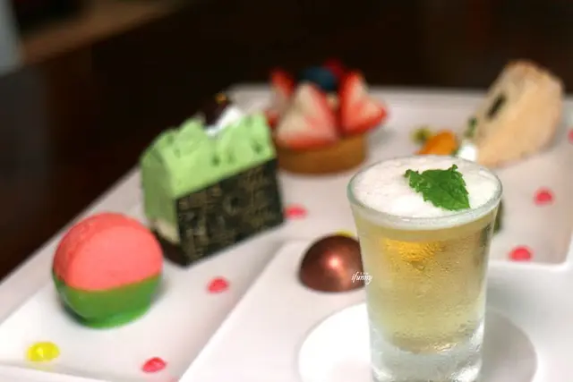 抹茶紅豆慕斯的抹茶味是淡雅型的,在尾韻才出現,令人回味不已。覆盆子馬卡龍的細緻酸甜,也是令人捨不得一口就吃掉的。