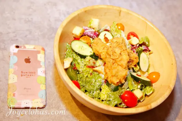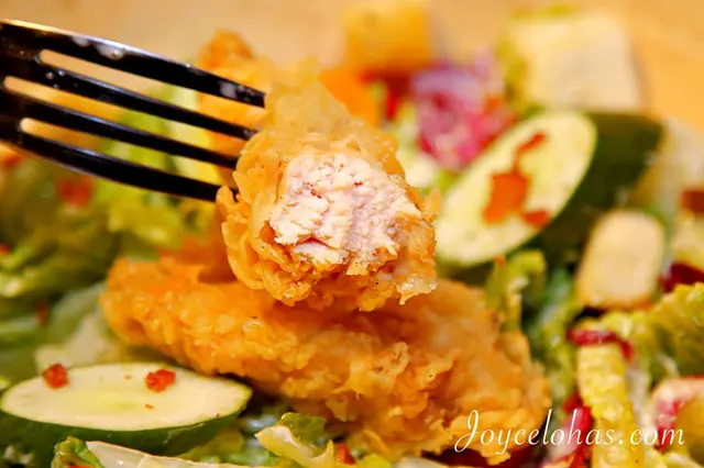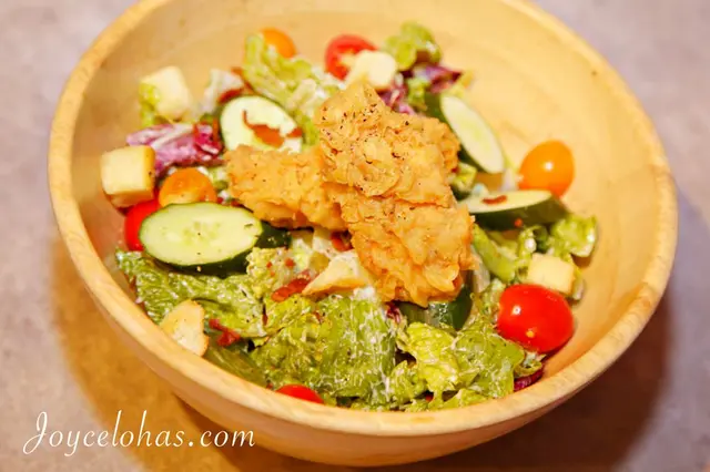 ▼經典的凱撒沙拉搭配美式風格炸雞,炸雞外有著厚麵衣,是很crunch的口感,裡面肉質不乾不柴,而且帶有肉汁呢!