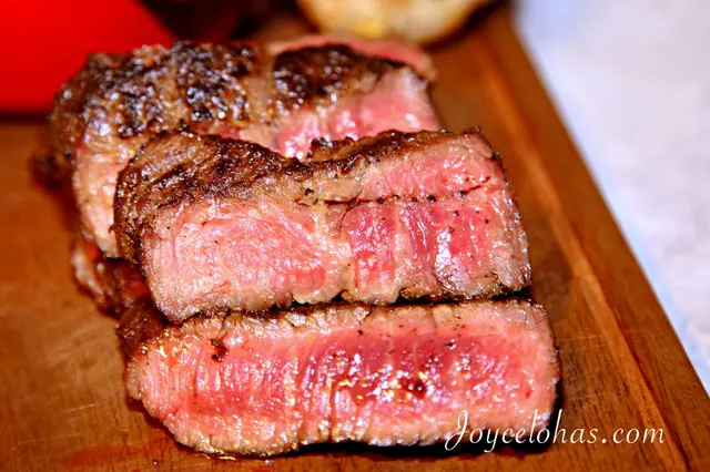 這兒選用美國Choice等級的肉品,美國2016年新切出來的牛排部位“丹佛牛排”,取自牛胸肋骨下方的肩胛肉,大量運動的肌肉組織加上均勻的油花分布,造就出略帶咬勁的口感。在炭火上直火烤至5分熟,切面是透出紅暈的粉紅色,入口咀嚼後炭香包覆著牛肉的香味,口感軟中充滿咬勁,原味就非常好吃了,還能搭配醬汁一起吃,味道更豐富唷。
