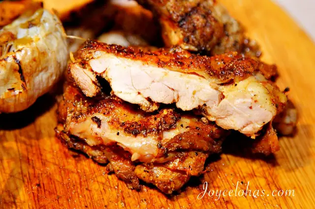 ▼烤雞腿也相當有實力,烤後呈現金黃色澤,肉汁豐沛,充滿異國香氣,肉質細緻不乾柴,每一口都是享受,一點也不輸給戰斧豬呢!