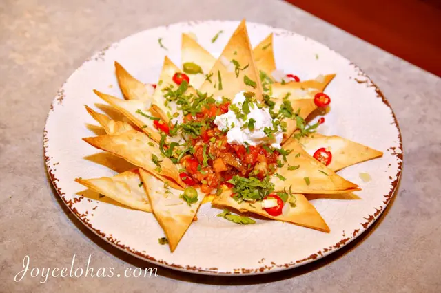 有別於一般餐廳使用現成的玉米脆片,這兒的脆片是自製款,搭配微微酸辣的莎莎醬及羊奶起司。
