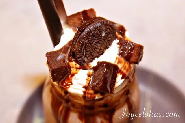 ▼帶點麥芽香味的巧克力奶昔,很順口不會甜到喉嚨刺痛,多變的層次,讓人不禁忘情一口接一口,上面搭配了布朗尼方塊和OREO餅乾,讓這杯奶昔不僅僅是杯飲料,也算是份甜點呢!