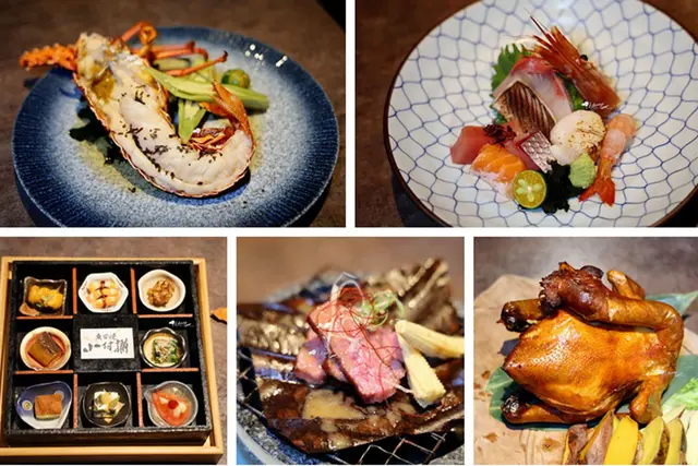 套餐內容包含:前菜、造里、強肴、揚物、肉品、食事、止椀、旬果甜品。