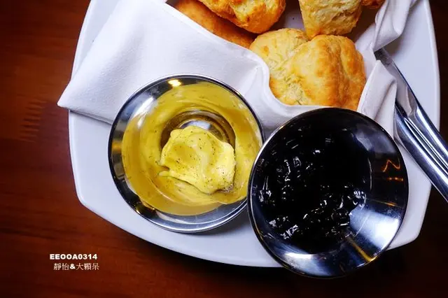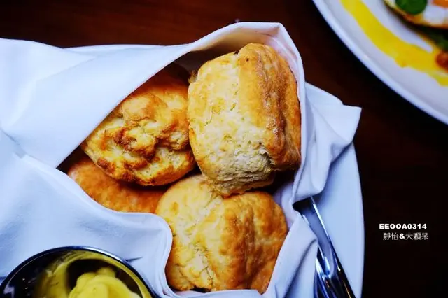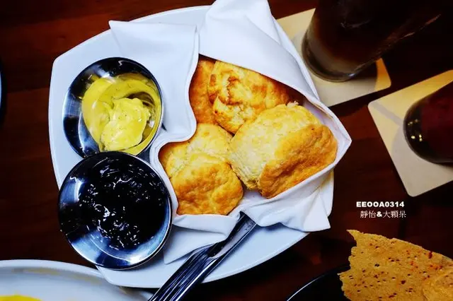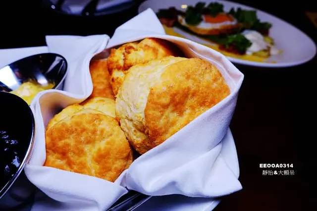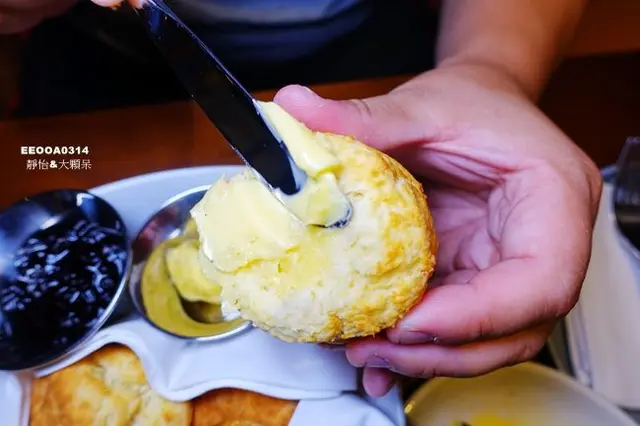 將比司吉依照個人喜好塗上厚厚一層奶油或是藍莓醬再送進嘴裡,是讓人好喜歡的香酥鬆軟口感~