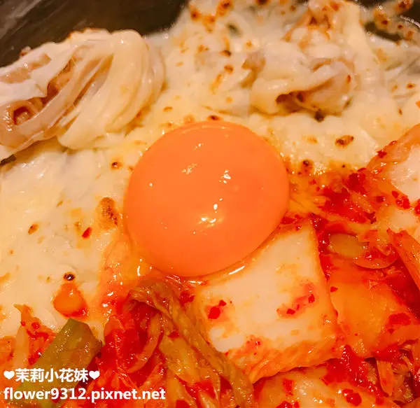可以看的到這一半泡菜一半起司~
