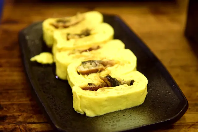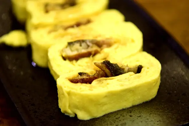 一份五塊的鰻魚蛋捲也是招牌。軟嫩厚實的蛋包覆著鰻魚肉一同入口,吃起來蠻清淡的