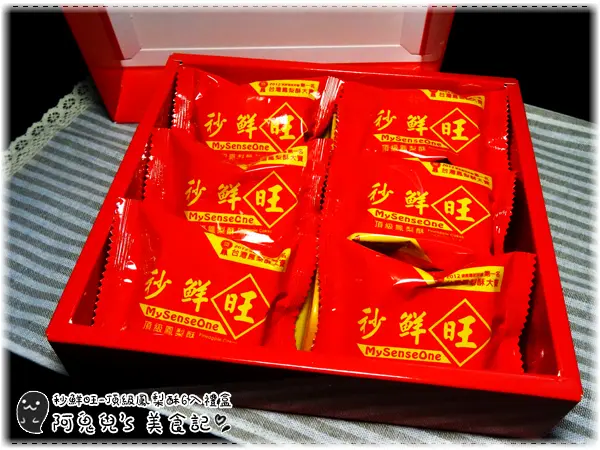 頂級鳳梨酥六入的試吃禮盒紅通通的顏色看起來很喜氣呢~