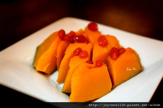 水煮南瓜本身沒什麼味道 配上枸杞的甜味清淡養身