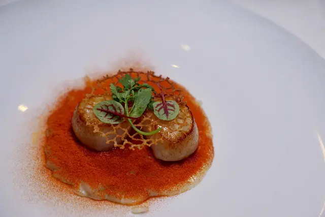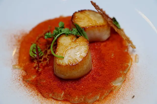 碩大肥美的干貝煎到外層金黃.裏頭水嫩