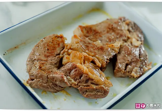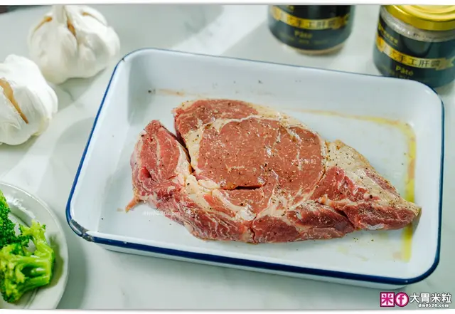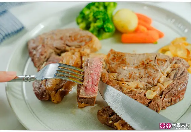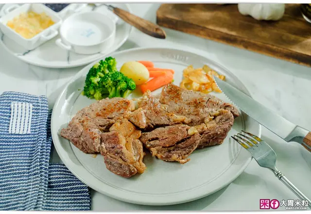 天啊~這陣子不能外出去餐廳用餐~一直心心念念想吃飯店牛排~現在家裡就能自己煎!重點還很省錢~加上美式賣場買的冷凍蔬菜,擺盤也很有儀式感吧!