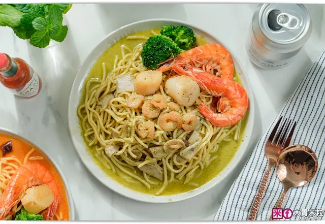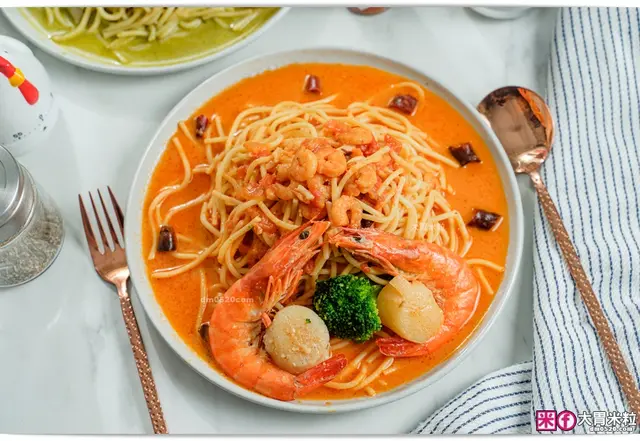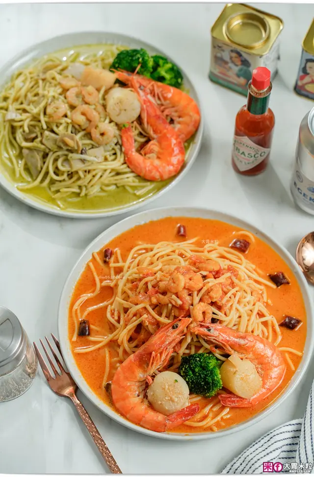 白蝦跟干貝,我們直接用搭配上週跟大家開箱的珍旺好食義大利麵即食包,一起在平底鍋拌炒,真的超級方便!