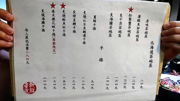 固定成員有馬糞海膽、自漬鮭魚卵、比目魚鰭邊肉、