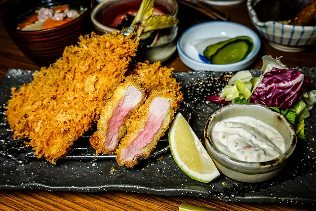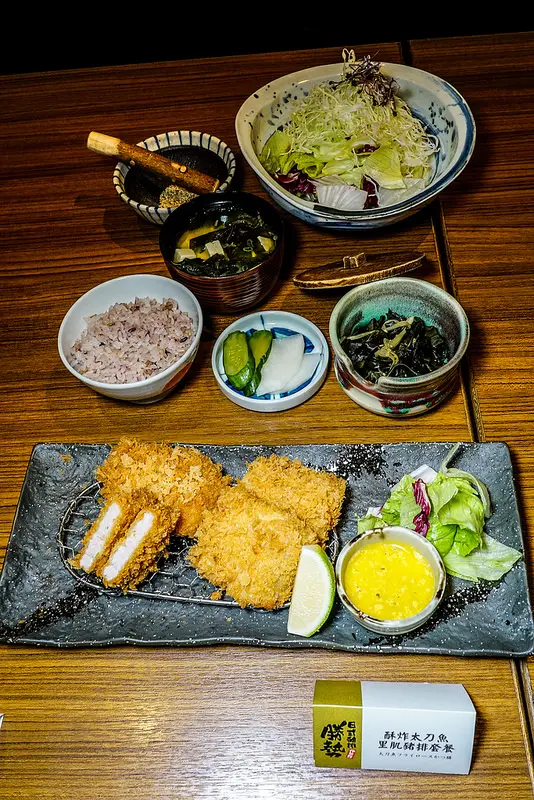 豬排則表現一向的好, 這個我建議魚要沾附的醬吃, 豬排則可以用它原來的芝麻與醬汁來搭配會更美味