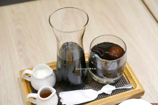冰滴咖啡搭配咖啡冰磚、附上糖漿與鮮奶