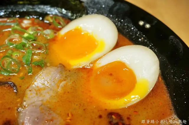 小米覺得他們的糖心蛋品質穩定度非常好, 吃了四種口味都有附上糖心蛋, 而四顆蛋的表現都是一致的好, 不會看到蛋黃心邊邊有過熟的情況, 而蛋液是半熟的濃稠有著滑溜的口感很過癮, 鹹度也剛剛好, 不會過鹹而蓋掉了拉麵口味. 小米會特別推薦大家要試看看他們的糖心蛋唷