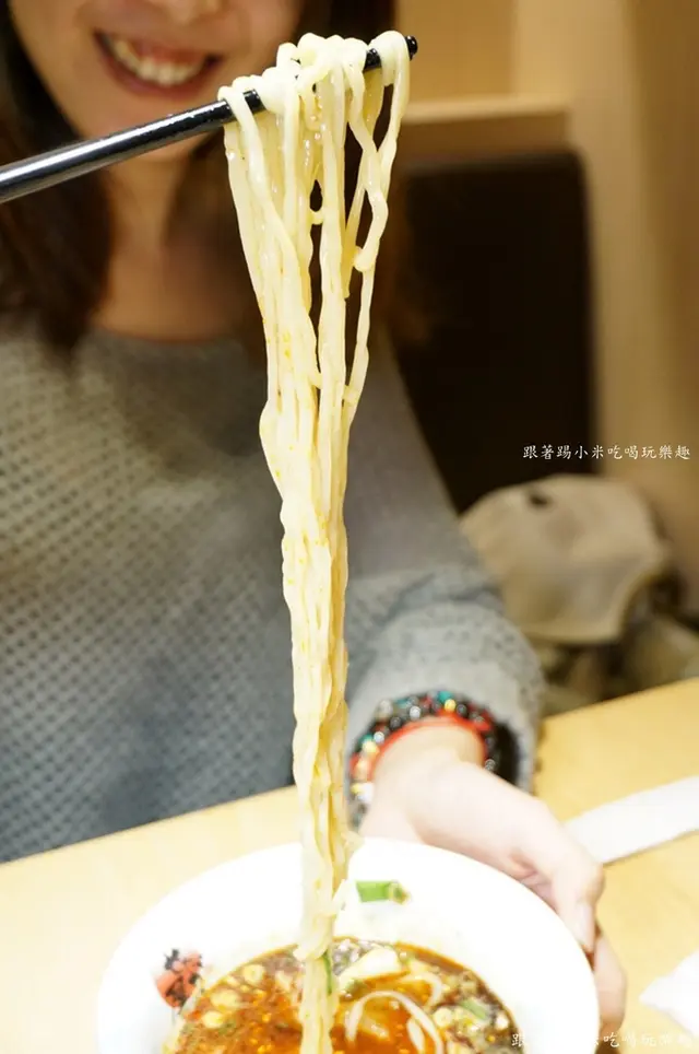 先來說說他們的黑紅雙醬, 由他們秘製黑白芝麻油及麻辣油所組成, 食用前要先攪拌, 小米喝了一小口, 雖然是有麻辣油, 但因為酸醋中和了辣度, 喝起來有麻辣香及甘甜的醬油清香, 不會重鹹, 可以說酸辣鹹的滋味都嚐到了. 再加上微微芝麻香很醒胃