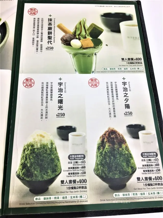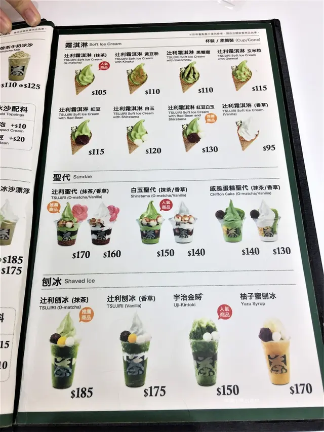 櫃台櫥窗展示了很多誘人的抹茶霜淇淋跟抹茶刨冰, 每一種看起來都好好吃的樣子~
