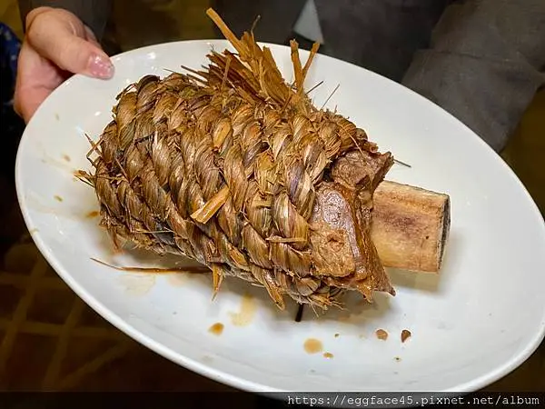 以台東的稻草捆綁,再加入特調醬汁燜煮