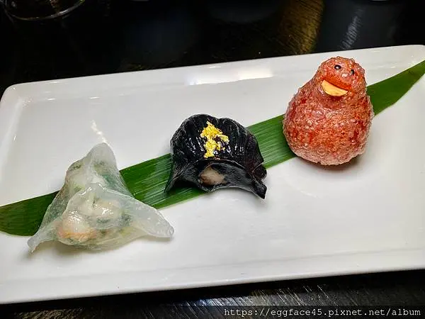 三角菠菜餃 (左) 鉑金蝦餃 (中) 甜菜根鹹水餃 (右) 這三款鹹水餃都巨好吃,