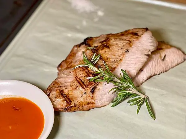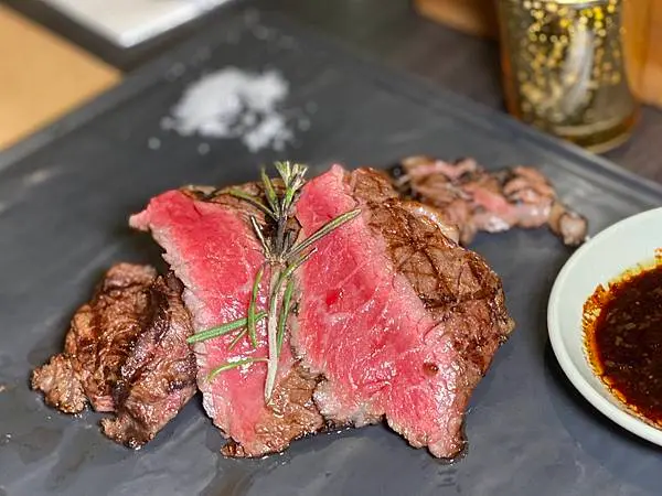 可搭配一旁的海鹽或黑胡椒牛汁,