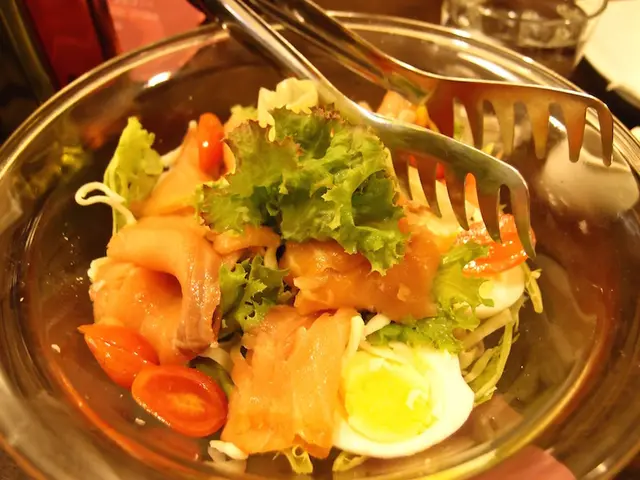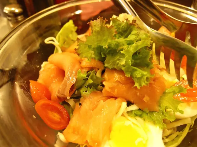 份量大約是3人份,裡面有生菜、番茄、煙燻鮭魚、莫札瑞拉起司、水煮蛋