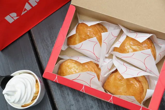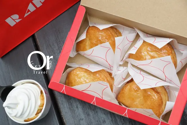 在台灣品牌給了她一個全新名字「RAPL彭派令果」不放肉桂的話就改加入卡士達醬吧!恰巧蘋果的酸能中和卡士達的甜膩。特意設計一手能掌握的圓頂狀派皮造型,不但能感受到144層酥皮的酥脆口感,更是希望一手大小能使人隨時從包包或袋子拿出,享受屬於自己的美好甜點片刻!