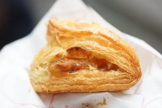 派皮口感十分酥脆並且有著蓬鬆且細緻的口感,表層酥脆,中層則是較有口感的,香氣也是相當迷人。