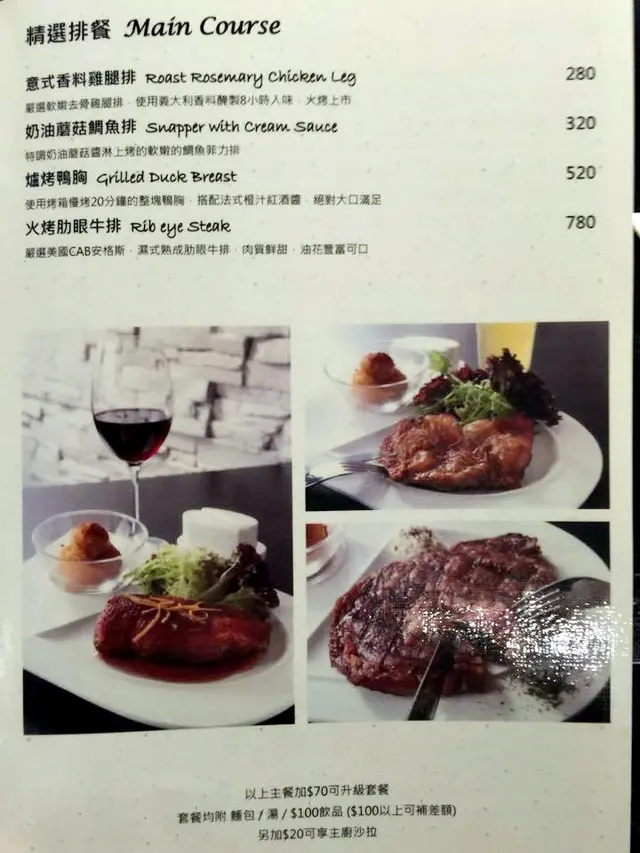 主餐加70可升級套餐(附麵包/湯/100飲品)
