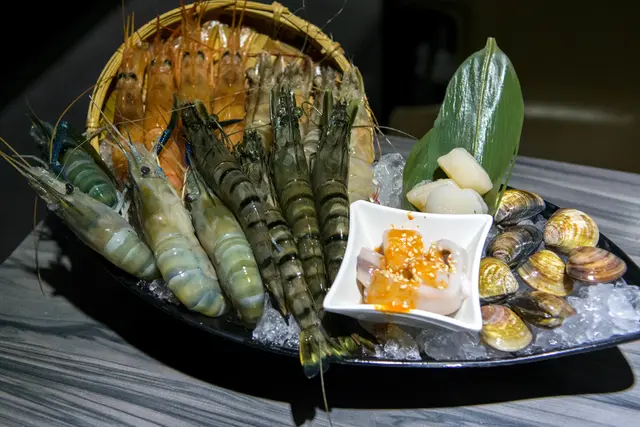 包含天使紅蝦、明蝦、泰國蝦、草蝦(巴掌蝦),每隻的個頭都很壯碩,但都有各自不同的肉質口感唷