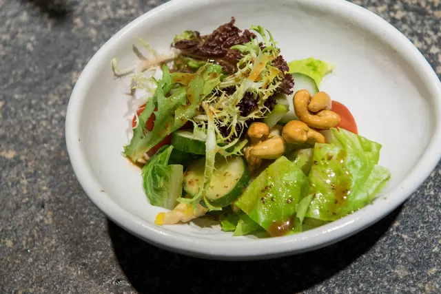 新鮮的各式生菜搭配和風沙拉醬,這裡的沙拉醬酸中帶鹹,和清脆的生菜完美結合
