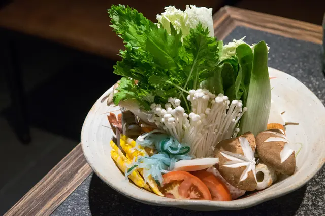 豐盛且獨具巧思的菜盤,除了一般常見的葉菜類,也可以看到日本水菜及大蔥
