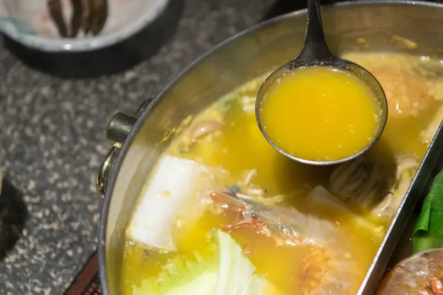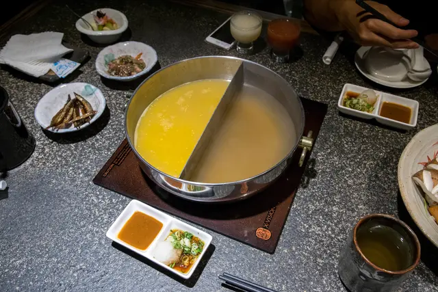 宸料理的火鍋湯底皆以老母雞下去熬煮,可以看到右邊較為澄澈透明的是純粹的雞湯