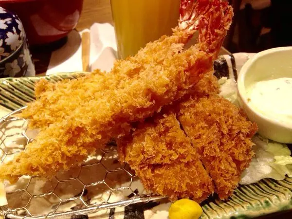 豬排就沾豬排醬,草蝦則是沾旁邊的莎莎醬