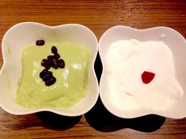 靜岡抹茶豆奶布丁(左)、手作杏仁豆腐(右)