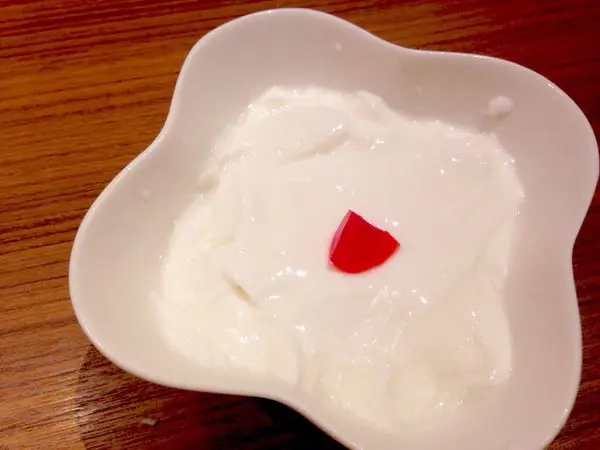 杏仁豆腐上放的是甜甜的罐頭櫻桃~