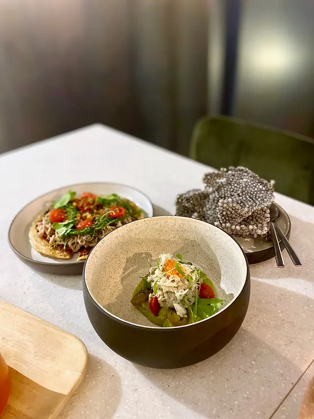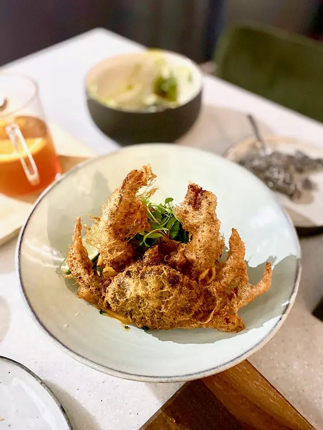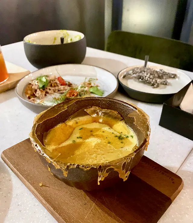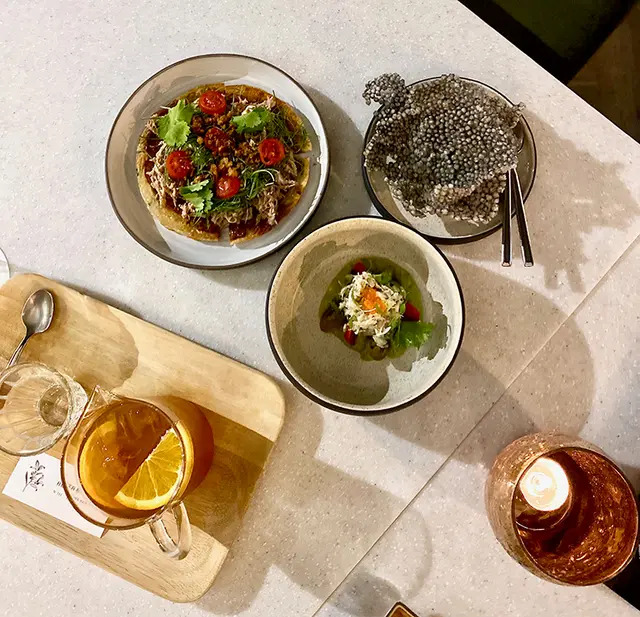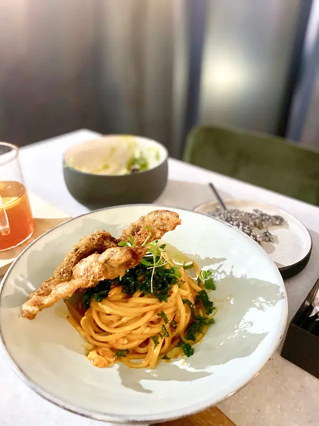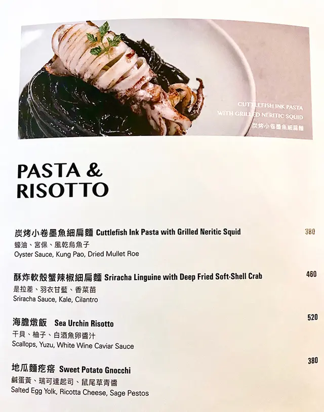 推薦菜色:無花果香 雪茄煙燻鮮奶茶、油封鴨腿塔可、海膽燉飯、酥炸軟殼蟹辣椒細扁麵