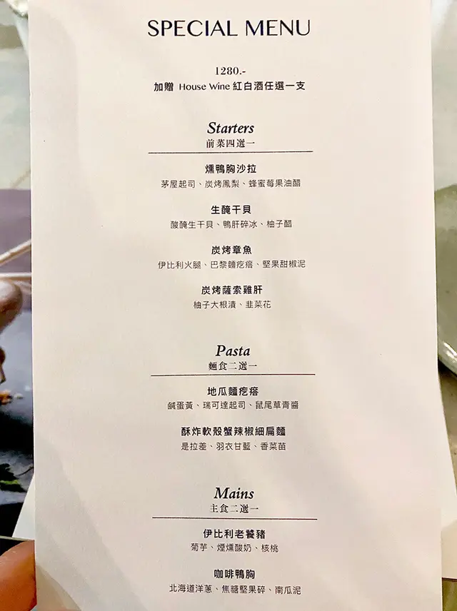 點special menu 會加贈house wine 紅白酒任選一支(可帶回家)